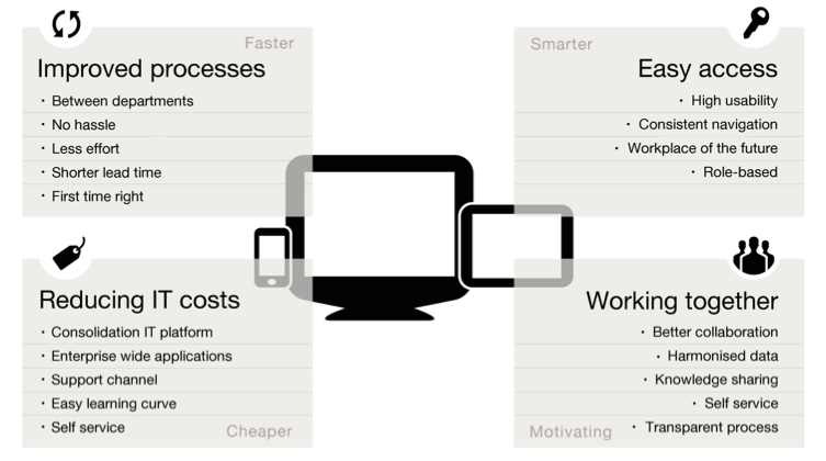 Most significant in SharePoint 2013 is that it is ‘built for the cloud [1] [2]’. The motiviation for Microsoft to focus on cloud-enablement is market-demand: a considerable subset of its SharePoint customer-base struggles with hosting and operating SharePoint themselves on premise. And because of this struggle, a lot of SharePoint-using organizations are reluctant to upgrade their SharePoint deployment. Via the Cloud / on demand offering, Microsoft aims to reach 2 goals: relieve organizations from the burden of SharePoint operations, and enable those same organizations to stay on par with the feature progress in the SharePoint and Office platform. Microsoft plans an upgrade release cycle of every 90 days for SharePoint 2013 Online.Duet Enterprise 2.0 Online