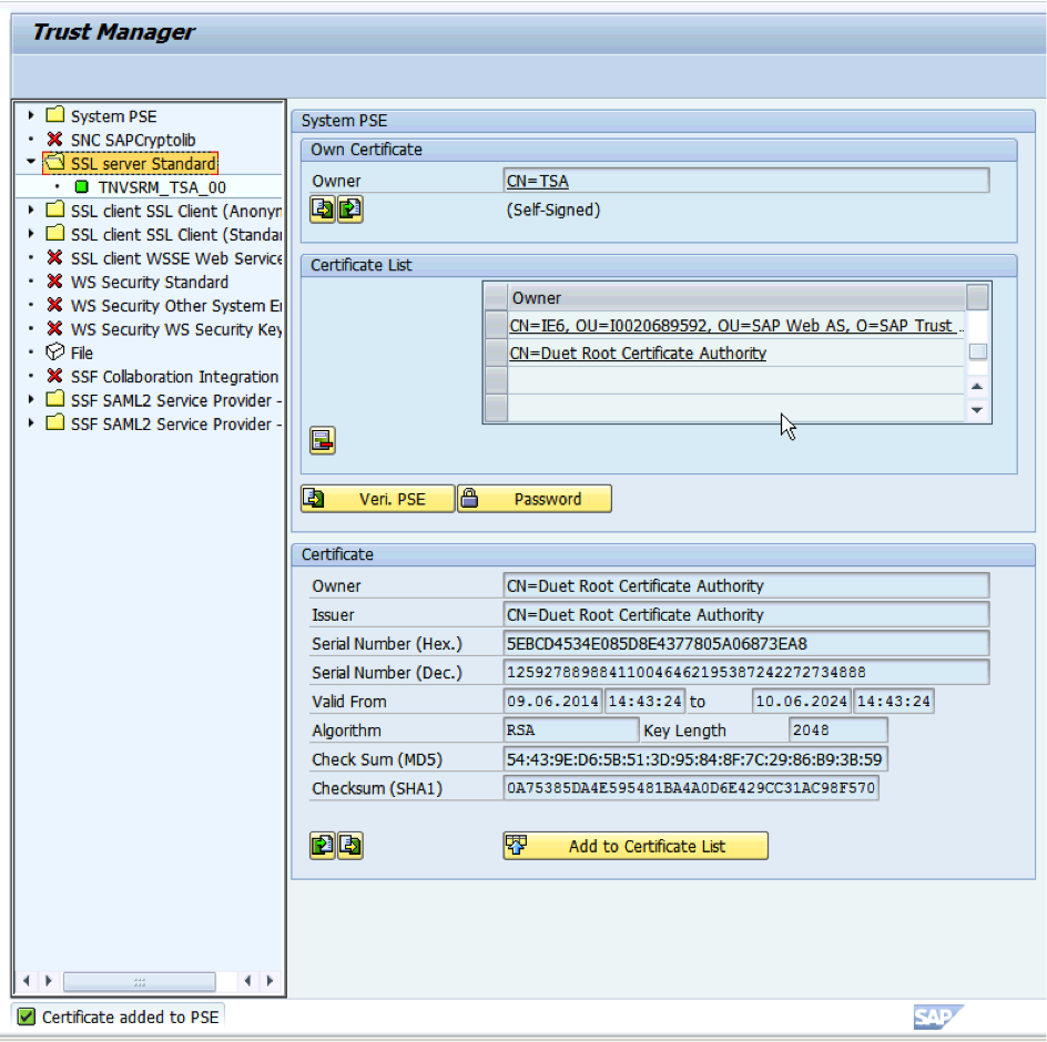 - Mutual trust-relationship between the on premise SAP Add-On and the on premise or cloud hosted SharePoint Add-On is based on X.509 certificates; no longer on SAML. The X.509 certificates are provisioned by the Duet Enterprise SSO Generator on the ('light') SharePoint 2013 node on premise.