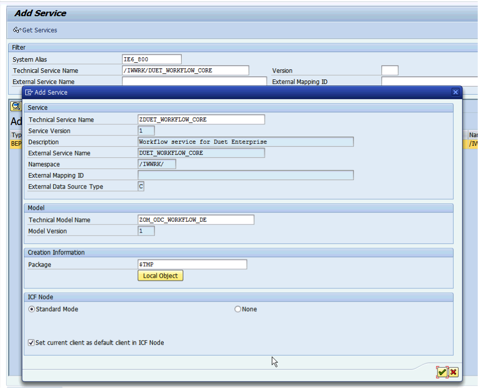 - Open transaction BDC Browser; if this is the first service definition for the custom business scenario, create a new Business Scenario. Otherwise you may opt to include the 2nd, 3rd and so on service definition all within the same Business scenario. I advice this as best practice, you then end up with a single Duet Enterprise Business Scenario that contains the entire set of Service Definitions developed for it. In case you create a new Business Scenario, it is again enforced by the system to include it within a customizing request. You can select the same as earlier created for the Gateway Model generation(s).