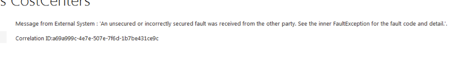 Browsing a SharePoint 2013 External List results in error ‘An unsecured or incorrectly secured fault was received from the other party’.
